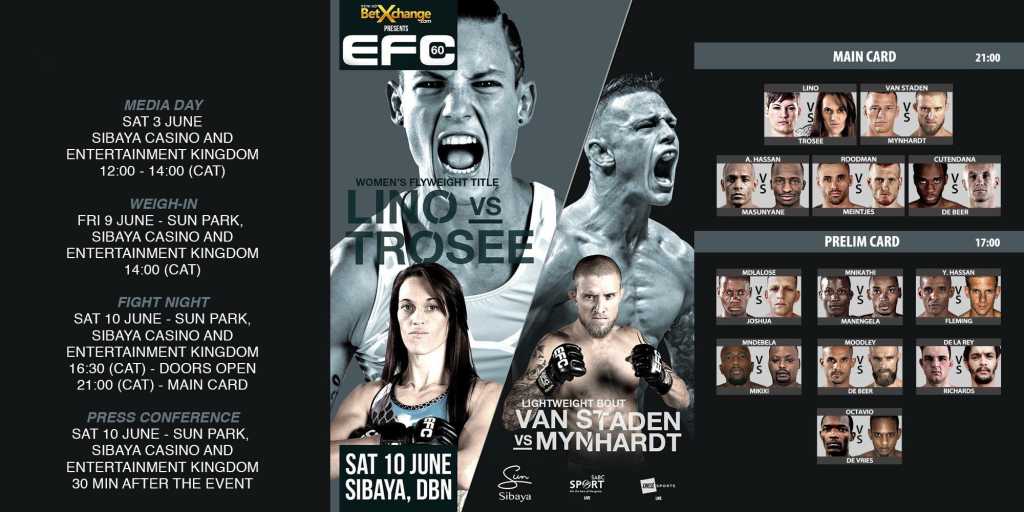8 years 2 months ago - 8 years 2 months agoEFC 61 takes place at Sun City on Saturday the 8th of July and there are no fewer than 12 bouts for punters to bet on.