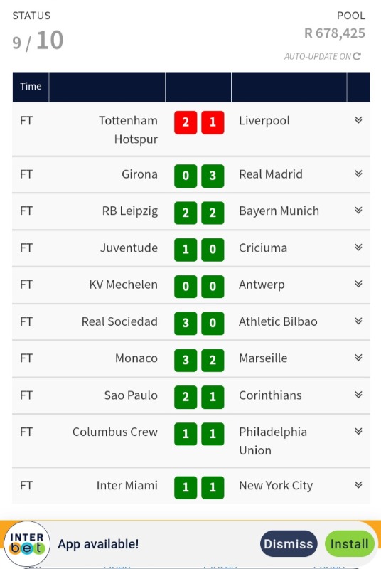 That match cost me my Soccer Pool bet. The payout was 27k for Spurs winning. If Liverpool won it would have paid abit less but definitely close to 20k. Anyway collected R327 for a consolation payout. We try again.