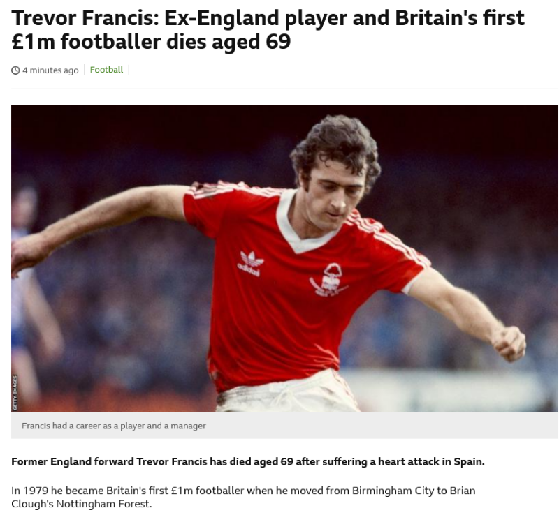 “On the very day that a world record bid was made… football mourns the loss of a great player and true gentleman who was simply…” Mirror Sport.