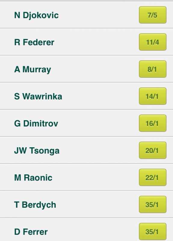 Djokovic and Federer will be quite short and odds will adjust based in draw and which half Murray ends up in...