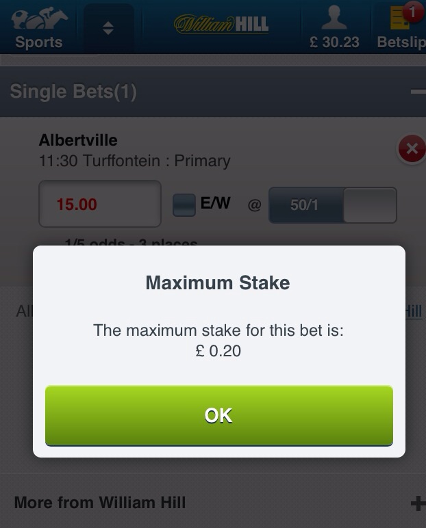 Re: Just tried to have £15 ew a horse
