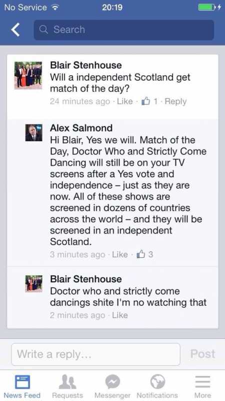 The major problem here is that a lot of Scot don't like the English and want to stick it to them. They are going to cry in a few years time if its a yes but its like talking to a brick wall.