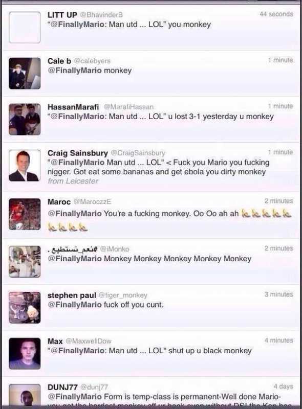 Balotelli mocks Man United on twitter and gets racially abused by idiot United fans.