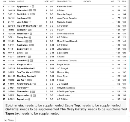 Gallante looks good each way value at 33/1 from a early perspective but I really fancy Avenir Certain. I think France will win it this year again. Probably my favorite race day of the year and look forward to watching, hopefully Tellytrack cover the whole day!