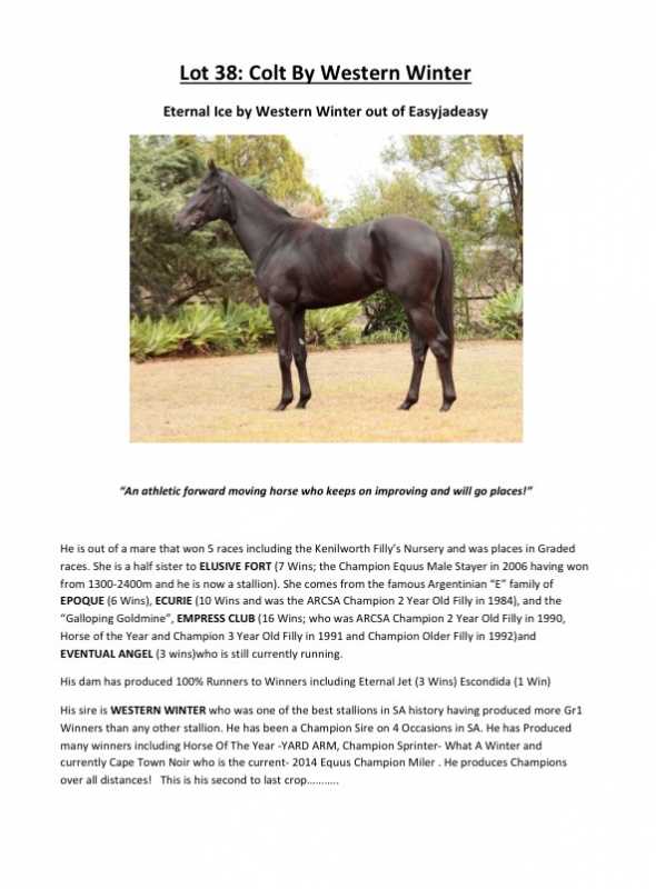 First of the Ambleway draft to come under the hammer is lot 38. This well bred colt is a son of champion sire Western Winter, sire of such outstanding champions as Argonaut, Ice Cube, What A Winter, Winter Solstice and Yard-Arm, to name a few. The colt, a brother to three winners, is out of the brilliant Gr3 Kenilworth Fillies Nursery victress Easyjadeasy, who herself is a half sister to Equus Champion and exciting sire Elusive Fort. This colt, who has been named Eternal Ice, is a colt with a real stallion’s pedigree. He is described as “an athletic horse who keeps on improving and will go places.” One for any serious buyers’ short list!