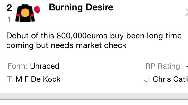 Chris Catlin, interesting jockey booking for the yard... I hope it's a big one for the future and that they keep some horses away from Dubai and fresh for next years Classics in Europe.