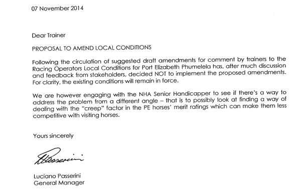 Mikesack, it still puzzle's many as to why Mr Millard stopped training. I think he was only 1 July behind the legendary Syd Laird and then stopped training. PE is right, they must look after their loyal owners before anything else. As Mark says" local is lekker" :whistle: