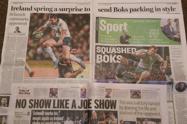 Complacency!! Well played Ireland, demolished in most of the tight phases and still won. Bring back Ruan Pienaar! Hougaard had a shocker and FFS take the points on offer! Shows a complete lack of respect for Ireland in that they kicked for the corner when in front of the posts especially seeing it is a one off test match. Came back to haunt them!