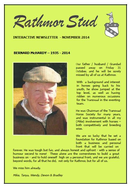 PLEASE CLICK ON THE FOLLOWING LINK TO OPEN RATHMOR STUD'S 4-PAGE NOVEMBER NEWSLETTER: