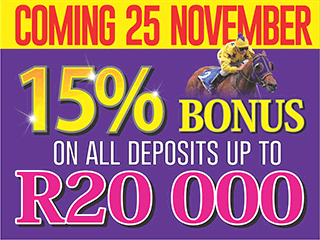 It's 15% Bonus Time at Hollywoodbets! Get a 15% bonus on all deposits up to R20,000 from today until the 7th of December. That's an extra R3000 for you to bet with! The festive season comes early with Hollywoodbets! T&Cs apply!