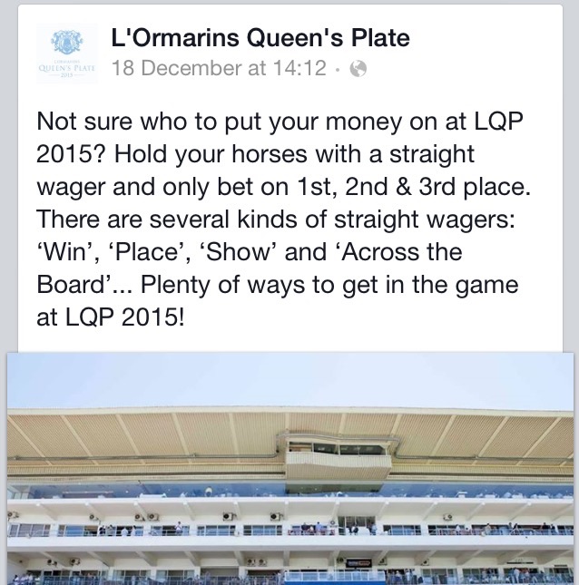 I saw the LQP website talk about the " show " bet ( now that confused me as I thought only the yanks play this bet ? )