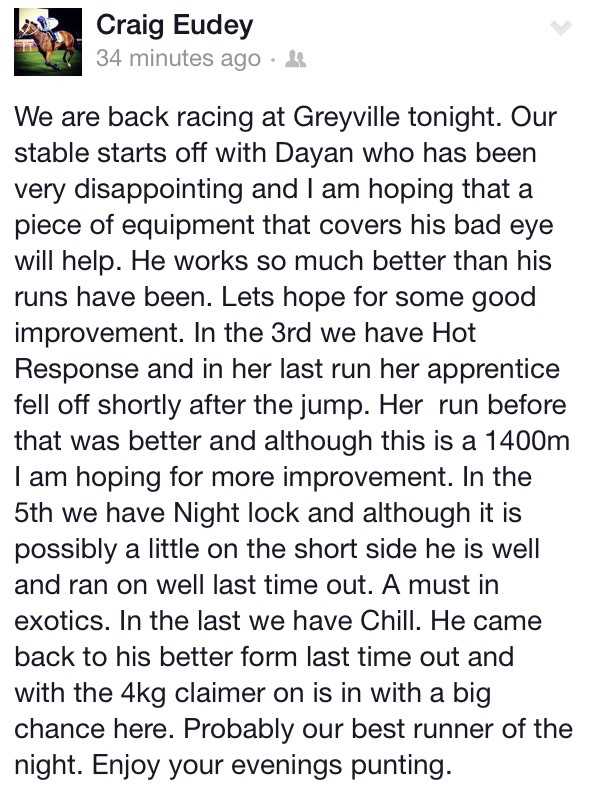 Back to tonight's racing, the poly races look similar to last week with the favorites dominating. Will be playing a treble on Ginger Biscuit (Race 1), Dark Liability (Race 2) and Ho'oponopono (Race 6), Can get around 12/1 on the treble. All three are my bipot bankers.
