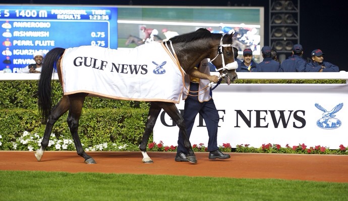 10 years 8 months ago2014 Al Fahidi Fort winner, Anaerobio in the Meydan Racecourse parade ring