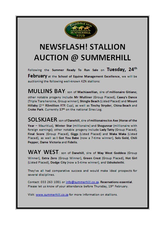 So who said that life is dull in a racing stable…? On Monday, Niebelung won again in Kimberley and the transport broke down on the way home…. On Thursday, we bought Way West, the sire who has been so good to us over the years. Basically, we got him for a pittance and he will come and stand up here, more for his freedom and a nice big paddock than for anything else.