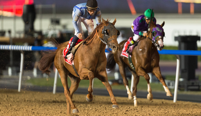 With a huge crowd at Meydan cheering and jubilantly throwing their racing programmes in the air, Godolphin’s Prince Bishop (IRE) unleashed the run of his eight-year-old life to defeat American challengers California Chrome (USA) and Lea (USA) in the 20th anniversary renewal of the Dubai World Cup sponsored by Emirates.