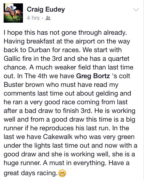 Re: Greyville Sunday