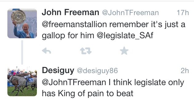 John Freeman says on twitter this morning that Saturdays race is just a gallop