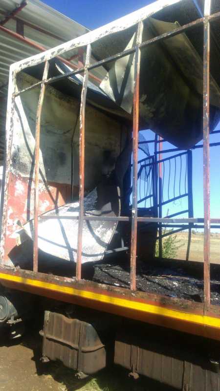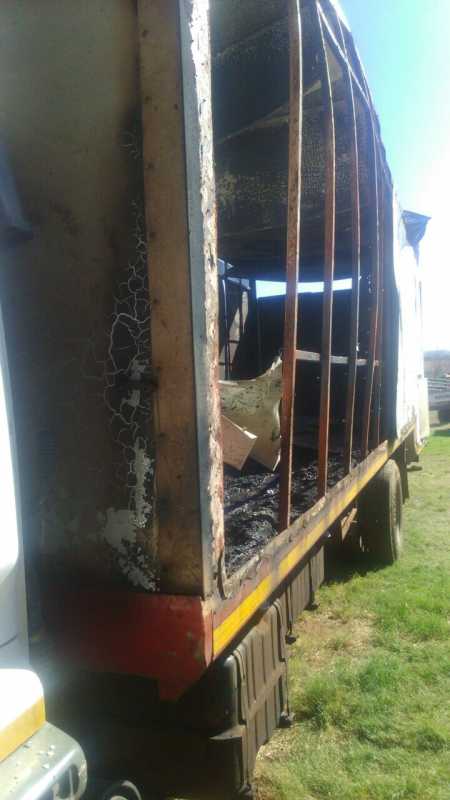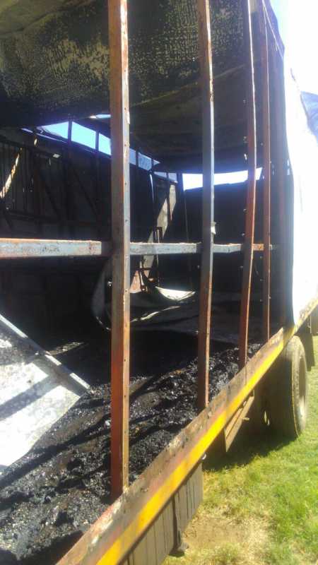 Neither the Cab or the back tyres seem damaged which probably eliminates engine or burning brakes..................I would guess a cigarette butt, not completely extinguished, in the bedding!.................. can cause smouldering for ages before igniting.