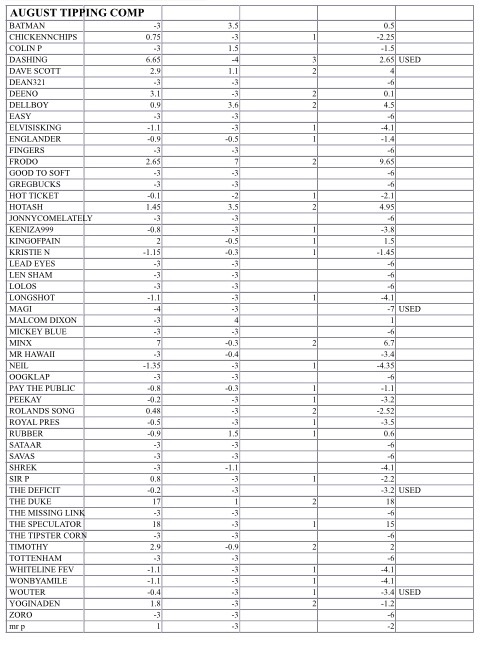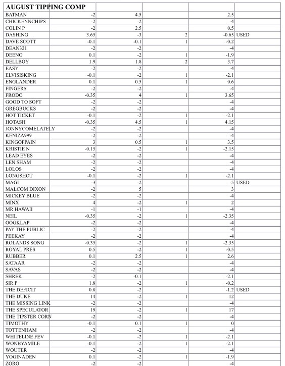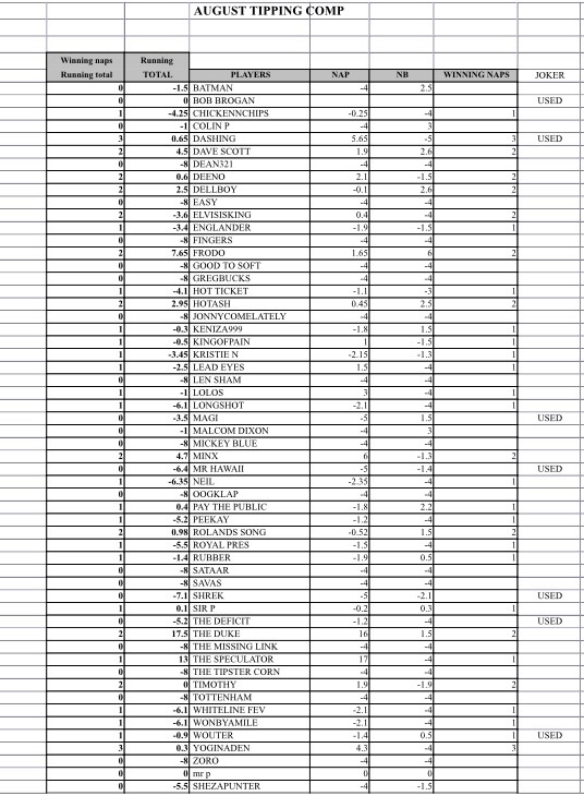 Can see a mistake already, Mr H total is correct but haven't added his losers to his nap and Nb column , if anyone notices any other mistakes don't be shy...
