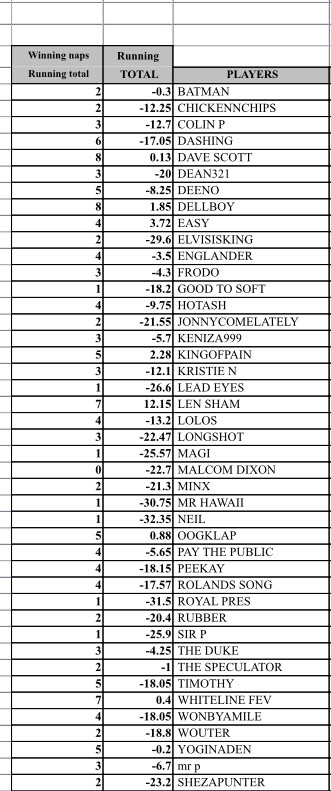 10 years 1 month agoBATMAN wrote: thanks.this comp will open alot of punters eyes as in the long run it shows that shortish price horses it is dificult to make money.