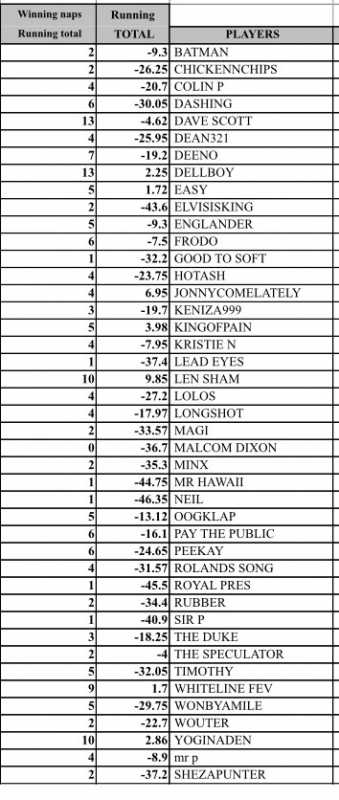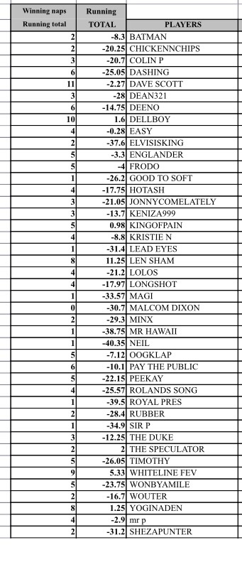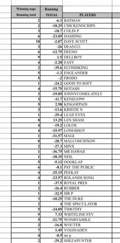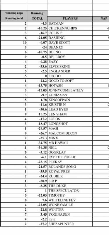 10 years 1 month agoBob Brogan wrote: Only scotia and Dellboy can win the nap " outright" or a few can tie with them