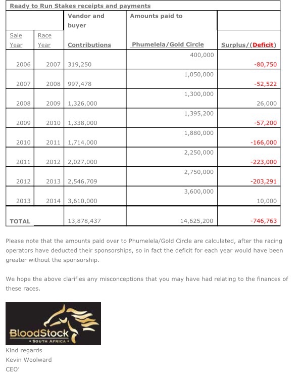 We would, in the interests of transparency relating to all of our Sweepstakes and Value Added races, like to advise the following: