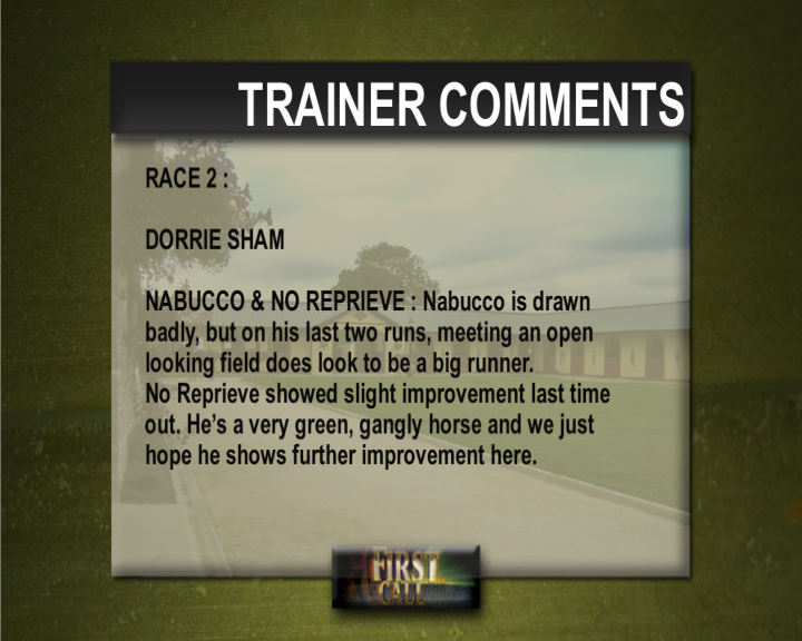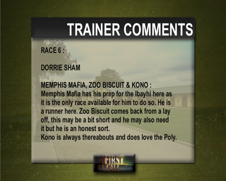 Race 6 The Stones loves this c/d with a good draw/handy galloping weight the value at 10/1 imo