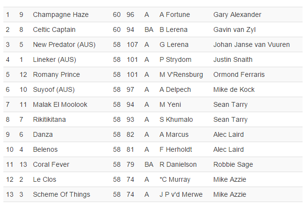 WSB has them 15/10 New Predator, 9/2 Champagne Haze, 6/1 Suyoof.