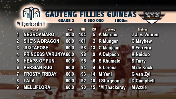Re: Final Fields Gauteng Guineas and Fillies Guineas