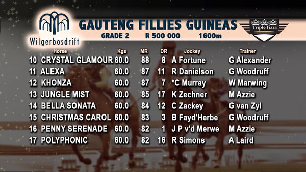 The Wilgerbosdrift Gauteng Fillies Guineas looks ultra competitive.
