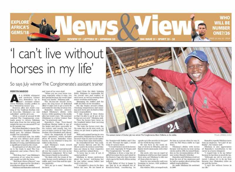 Lovely article about Joey Ramsden's assistant trainer Alson Ndizima after winning this year's Vodacom Durban July - Sunday Tribune, 10 July 2016