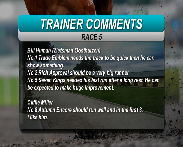 R5 If stable performing day then Red Special could be hard to beat. Rich Approval and the possible value, Seven Kings, might be the ones to takes advantage if RS flops. Master Archer and Masnoon will not be big shock winners for me should that happen.