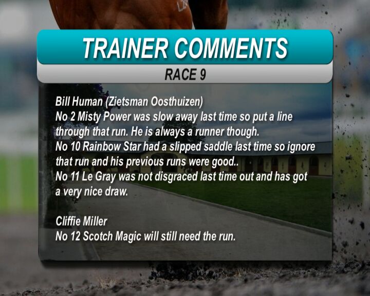 R9 Back to the idiots. At the prices, I'll give Le Grey a rand or two e/w. Third run after a rest and a decent draw for a change. Tayaar will get 50 cents e/w. Solid As a Rock and Tzitzikama Fire could be involved.