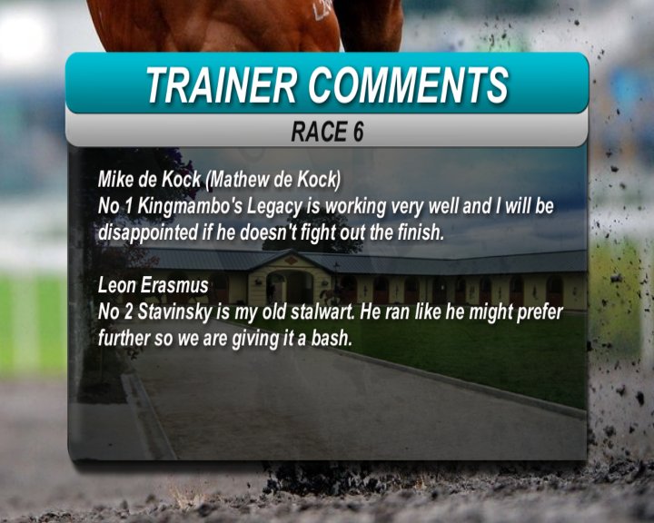 With Azzie and de kock not sounding confident race 4 and favourite scratched, Anna Pavlova might be running with a distinct lack of opposition.