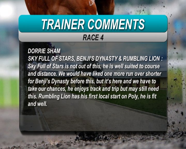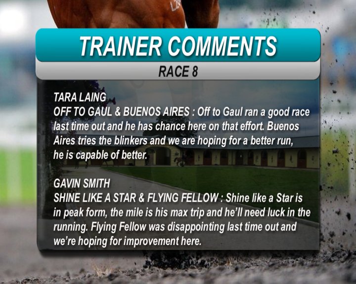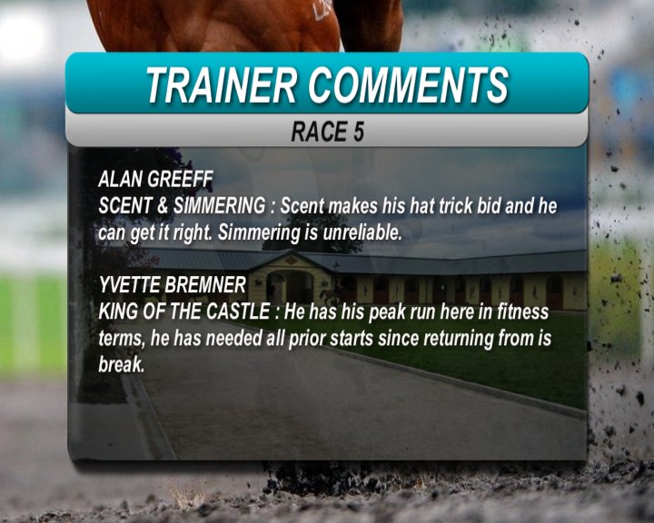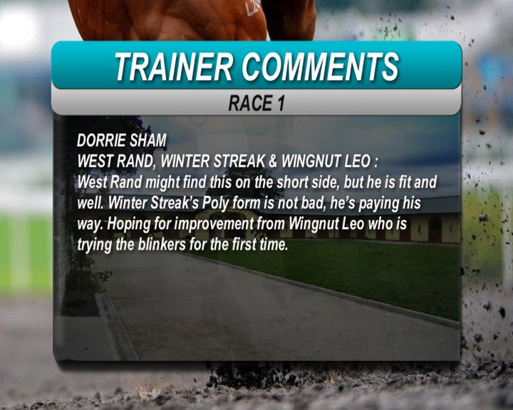 Thank you for all the trainer info Bob. Seems Hollywood must have taken a beating somewhere as no Fairview betting available, yet the Greyville night race meeting is out???