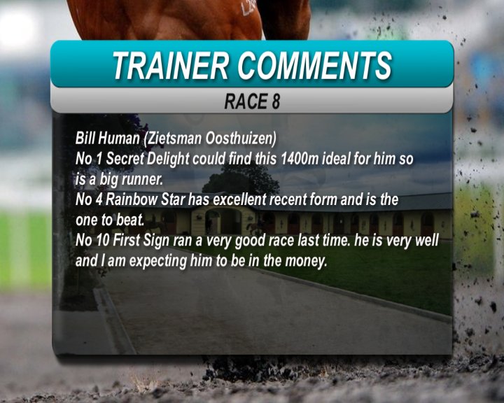 Cheers Ziets so u basically have the trifecta in the 8th race