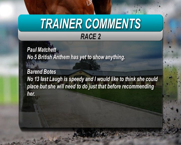 COLLABRO - I thought that he would prefer a 1400m after his debut when green and having to come over from a bad draw. The first two in that race are future GR1 horses, imho. Today we again have the draw bias coupled with the rain which will make the draw bias even worse. The reason that I put him in this race was because he showed a big improvement at home in terms of speed and because this is a weak field. On his work and all things being equal, I make him a big runner, if we can get over towards the middle/ outside of middle.