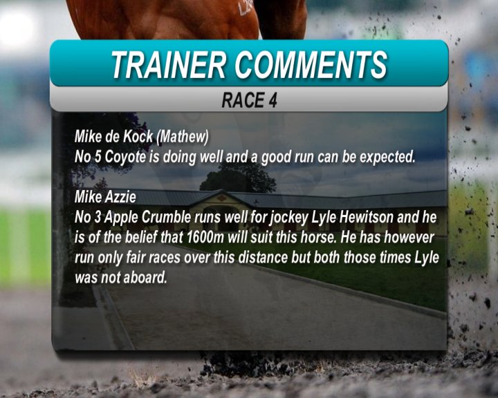 Apple Crumble also a runner in that race