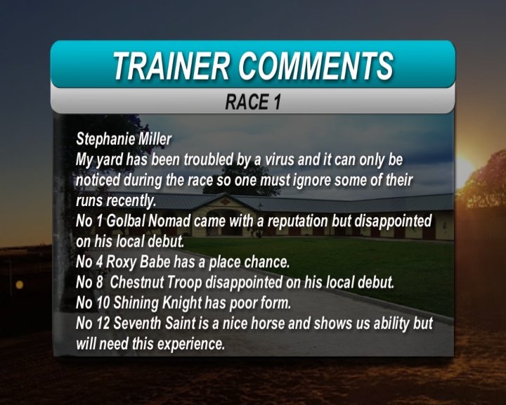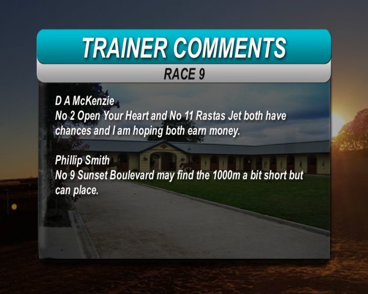 Race 9: Moonlight Mist(4) 11-1 (Ignore last run hampered and jumped awkwardly, back to 1000m - Big Runner!!!!!)