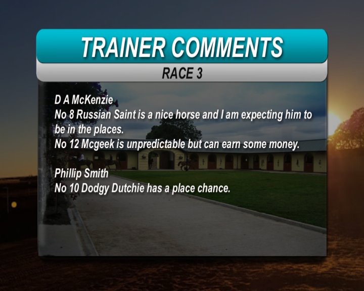 Hard to fathom why Russian Dream (race 2) has been shipped to the hole so soon in her career. Clever Guy and Smartifact both bolted home from the formline midweek. If I knew she was fit,well and most importantly trying I would be having a go.