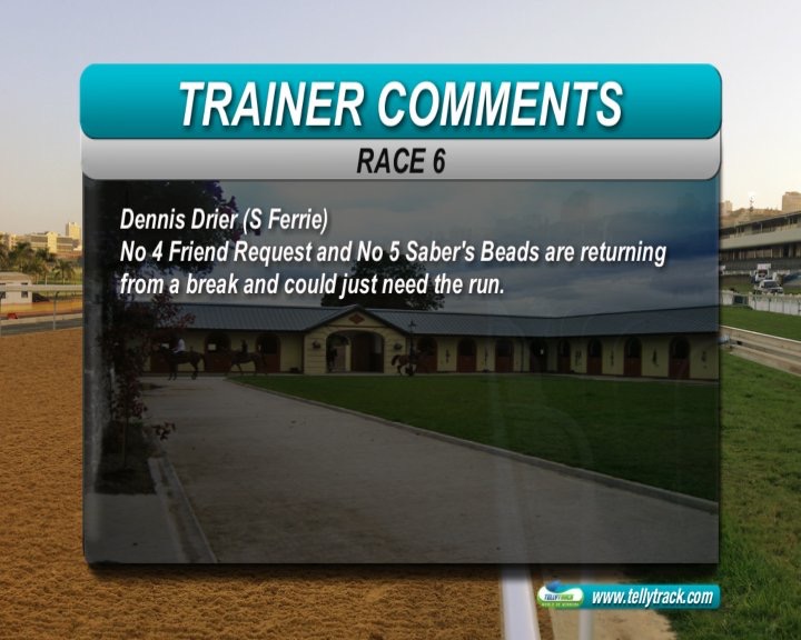 Race 6: Fantasy Art(1) 5-1 (Has been running against much stronger 2 runs back ignore he over raced and faded. Form otherwise not bad for a 5-1, and running against this lot should give a good account of himself)