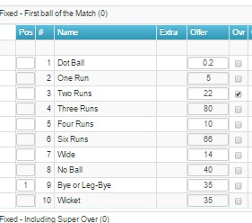 3 TWO RUNS 16 - - Fixed - First ball of the Match (0)