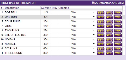 In the match earlier between Perth Scorchers and Sydney Sixers a bet was placed for the 1st ball of the match to be 4 runs.