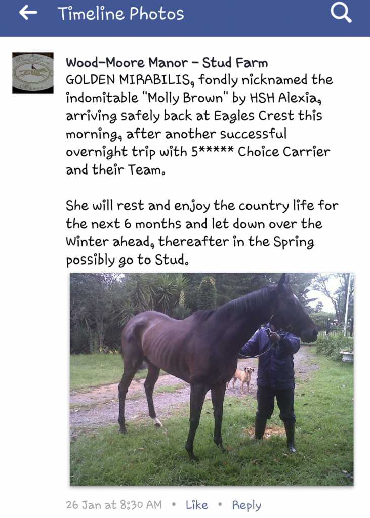 If the owner/breeder was guilty of any wrong doing why would they post pics on facebook of the horse in a seriously bad condition?? Why are they doing anything in there power to help this mare? They bred the horse and had racing shares in her. So they had an emotional and an invested interest in her! Surely if they in the wrong they would not go to social media?