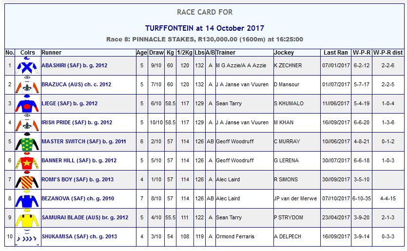 I see he is nominated for the 14th at Turffontein.