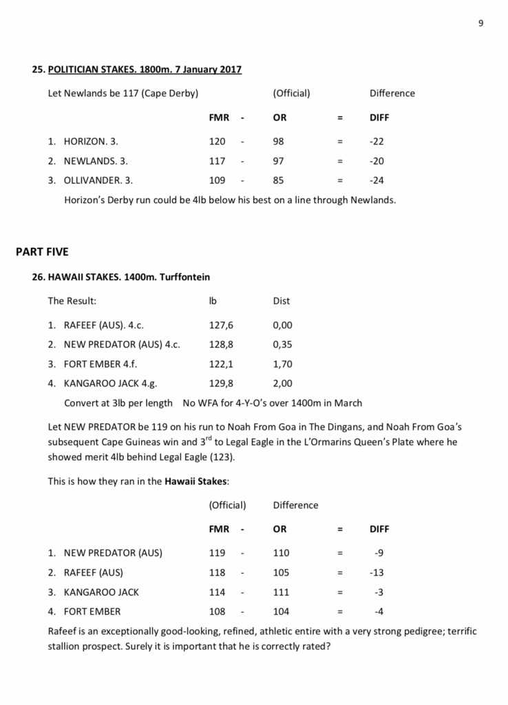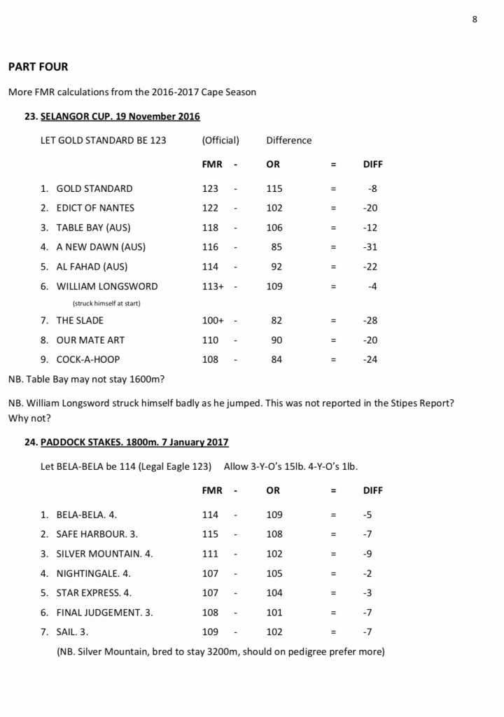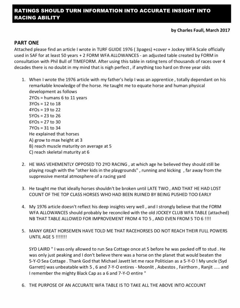 I've said this before and will say it again....MR ratings is all balls!!!! The majority of the racing public is form studiers who rely on MR as the corner stone of their analysis...hence the majority of punters are and will always be on the losing end!!! Having said that,it was nice to read what Mr Faul is saying...and IF he is correct,I guess it can be used to get certain results...but never make it the holy grail.