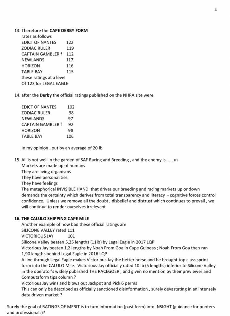 Have we not been pleading to remove the constraints in the formulae for merit ratings? Could the NHRA also be using wrong line horses because those MR's are all messed up with the constraints? If the NHRA want to appease the connections then rather introduce allowances.