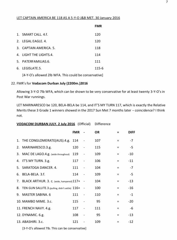 Looking at these ratings (calculated with the 'flawed' WFA) does seem to indicate that some horses do improve from 4 to 5 (Legal Eagle from 116 to 120) but others do not (Capt America remained at 115)