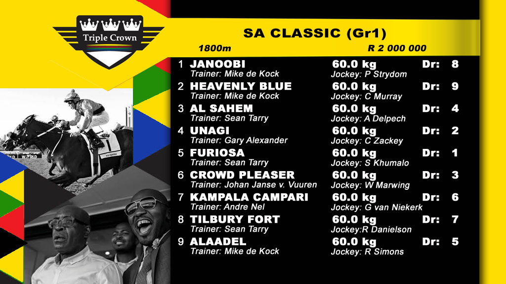 Final field for the R2-million SA Classic (Grade 1)(2nd Leg of SA Triple Crown) over 1800m