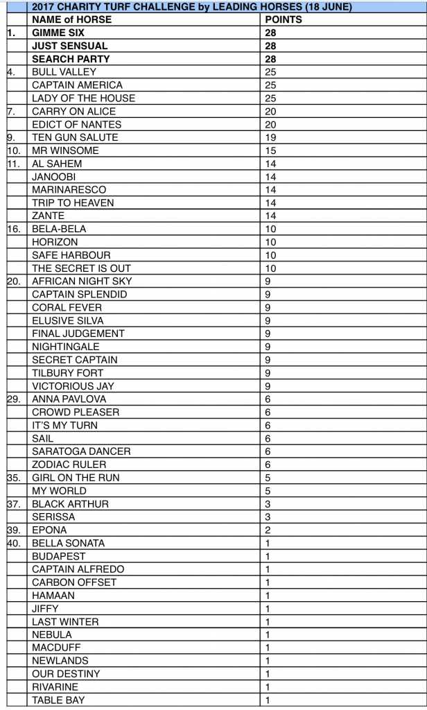 This week, the big race action in terms of points scored came in the form of the final leg of the Western Cape’s Winter Series, the Gr.3 Winter Derby. African Night Sky completed the treble in scintillating style when streaking clear of his field for Fred Crabbia and took his CTC points tally to 18 with the 9 points he earned. Paddington ran second and Ollivander, who was part of the competition came third and got onto the leader board with 3 points. In the Listed Ladies Mile, Silvan Star got the job done and took home 2 points for those players that looked for value outside of the KZN Season.